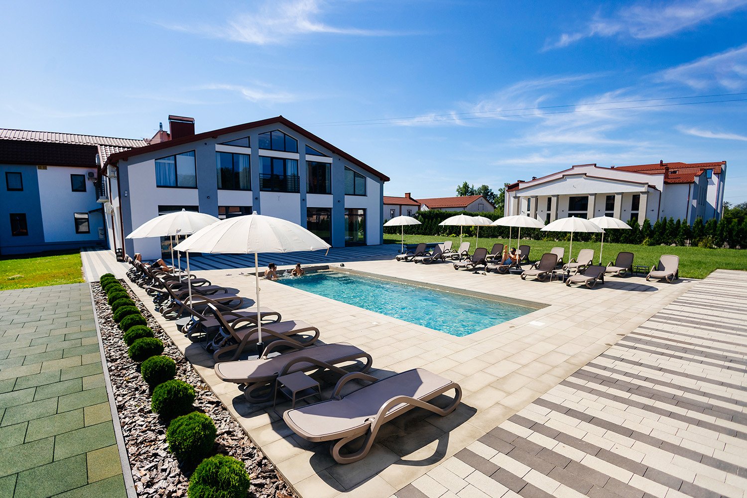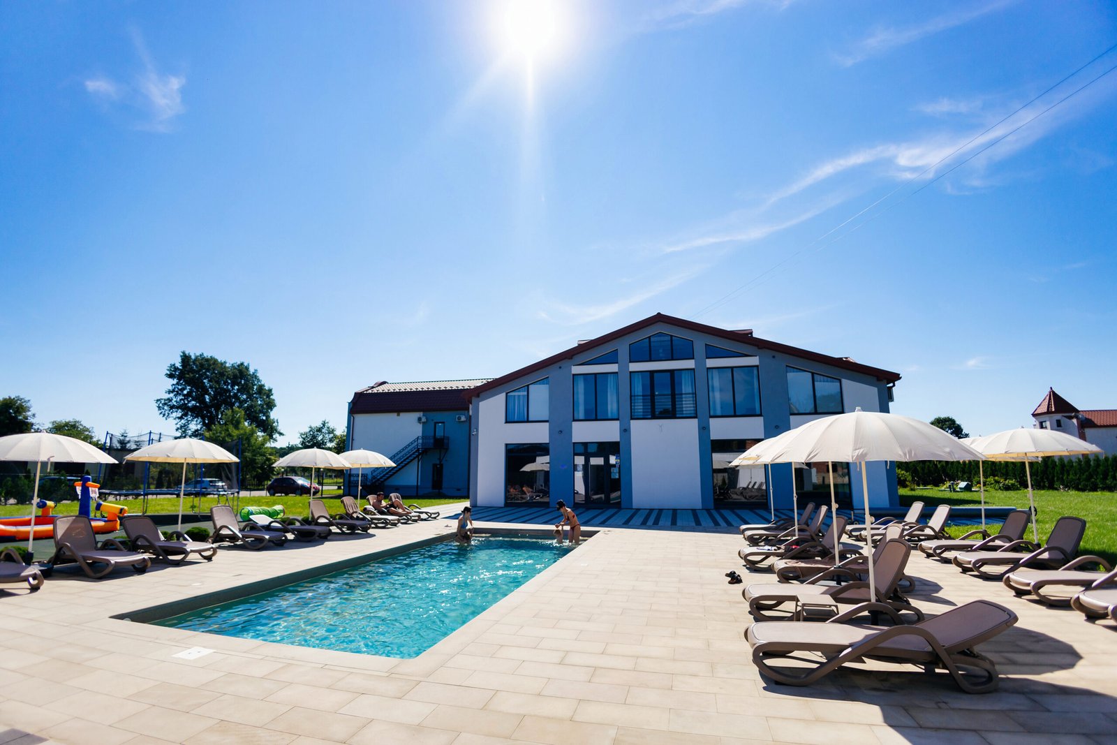 Басейн з підігрівом і дитяча зона з батутом